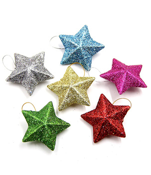 Ozdoby Choinkowe Gwiazdki 6 szt. – Brokatowe Dekoracje Świąteczne 5 cm