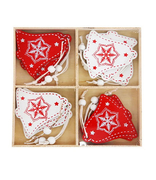 Świąteczne ozdoby – Dzwonki, 12 szt., czerwono-białe drewno
