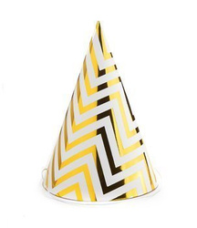 Czapeczki urodzinowe złote zygzak- 5szt.