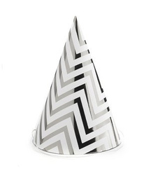 Czapeczki urodzinowe srebrne zygzaki - 5szt.