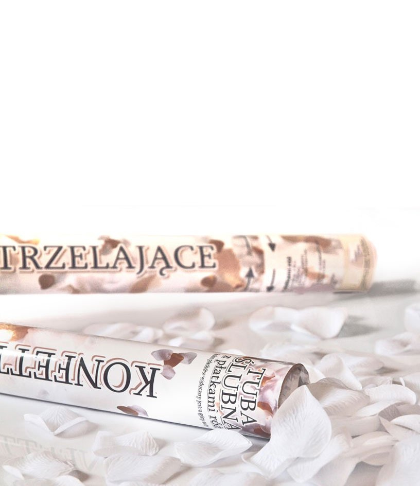 • Tuba strzelająca KONFETTI 60cm PŁATKI RÓŻ » biała