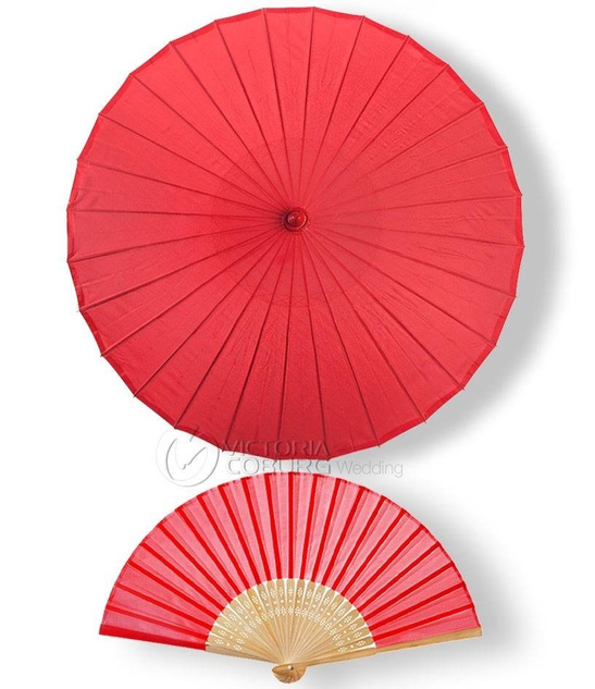 • Komplet chińska parasolka i wachlarz » CZERWONY