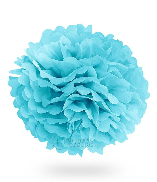 • Niebieski pompon z bibuły 50 cm – elegancka dekoracja wisząca na wesele, ślub, przyjęcia i do pokoju dziecięcego. Lekki, efektowny i uniwersalny.