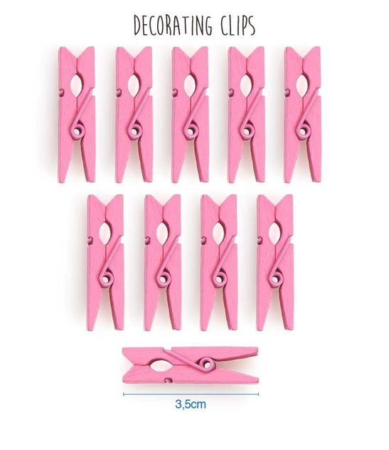 Malutkie, więc urocze, w żywych, intensywnych barwach, mocne i trwałe klamerki ozdobne to sposób na stworzenie unikalnych dekoracji weselnych, urodzinowych, walentynkowych i wielu innych. Ozdobne klamerki posiadają wymiary 3,5 cm x 0,7 cm. Cechują się szerokim zastosowaniem i są niezwykle modnym akcentem dekoracyjnym. Dzięki nim pięknie wyeksponujesz fotografie, stworzysz girlandę lub napis z dekoracyjnych literek. Ozdobią winiety, zaproszenia i podziękowania ślubne.