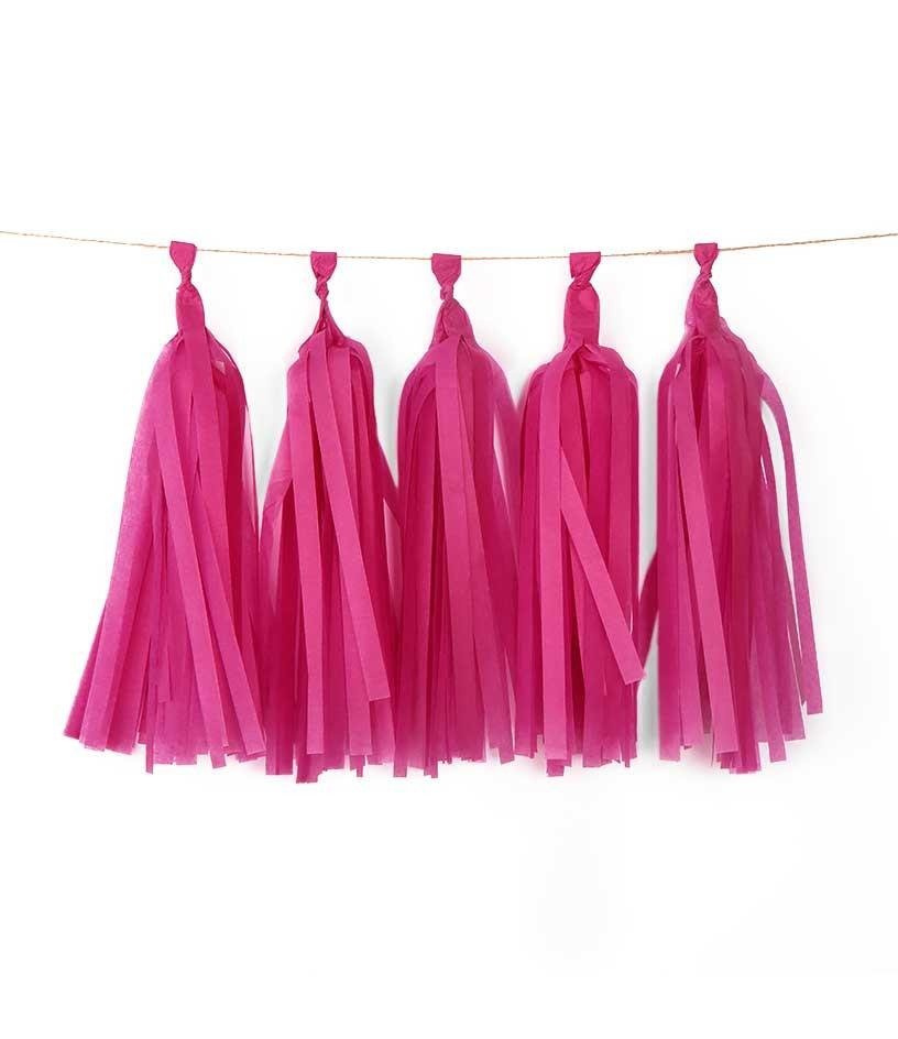 GIRLANDY frędzle z bibuły 5 szt. - fuksja