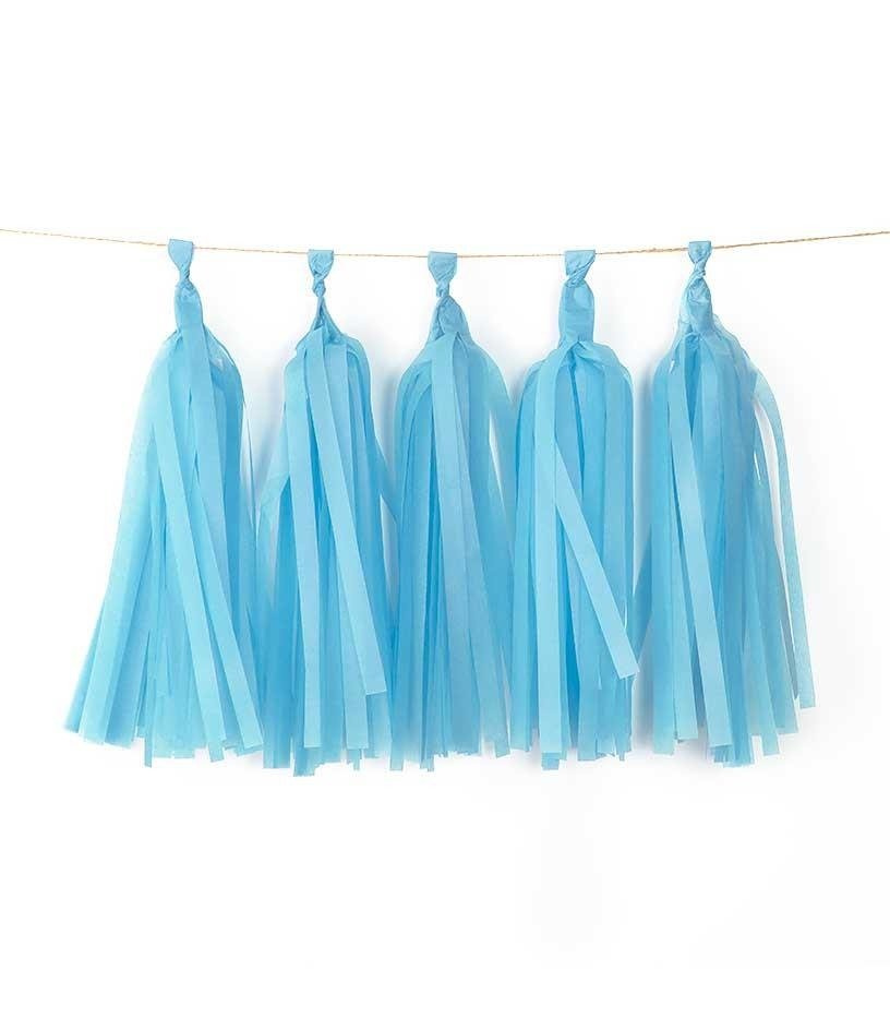GIRLANDY frędzle z bibuły 5 szt. - niebieski jasny