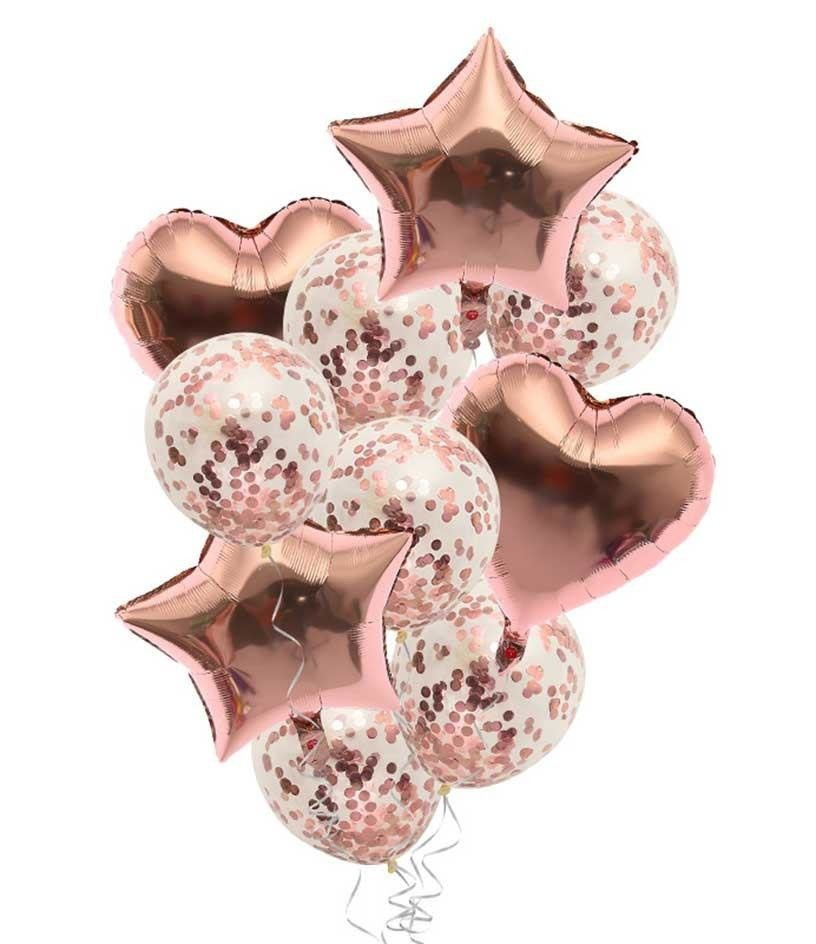 Balony konfetti różowe złoto ZESTAW - 10szt