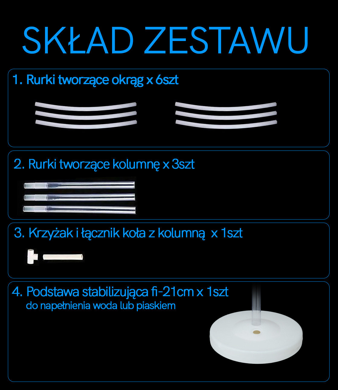 Prezentujemy stojak okrągły 160 cm – doskonały zestaw do tworzenia efektownych dekoracji na wesela, śluby, urodziny, jubileusze oraz inne uroczystości. Dzięki temu produktowi stworzysz imponującą kolumnę dekoracyjną, która stanie się centralnym punktem każdej imprezy.
