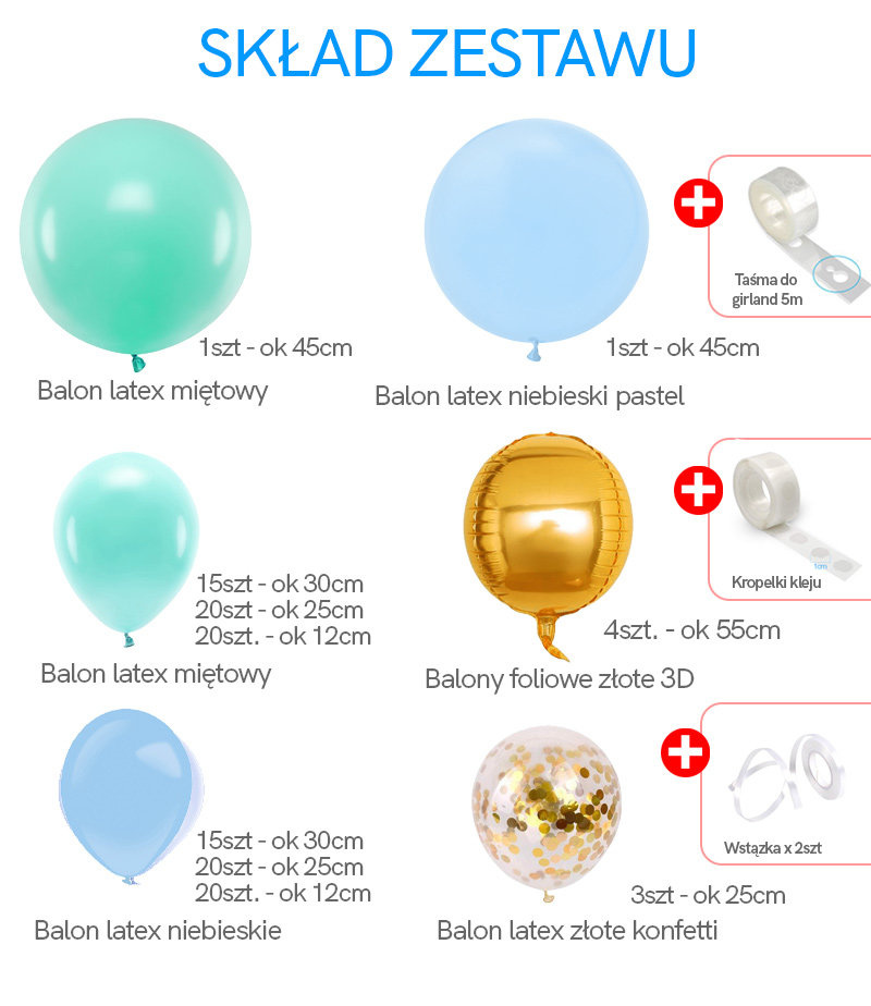 - 1 x balon lateksowy miętowy - ok. 45cm