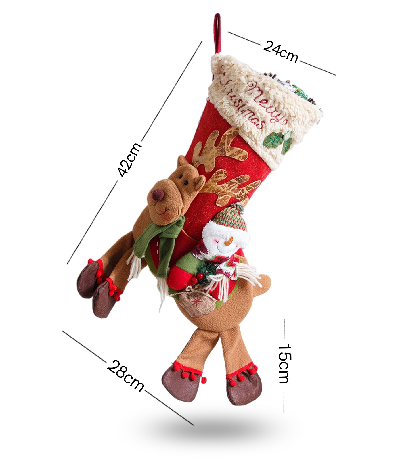 Świąteczna DUŻA skarpeta na prezenty Renifer z Bałwankiem 24x42 cm – ozdoba bożonarodzeniowa