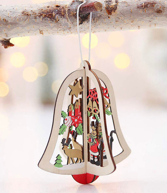 Przestrzenna Ozdoba Choinkowa 3D – Drewniany Dzwonek 10 cm