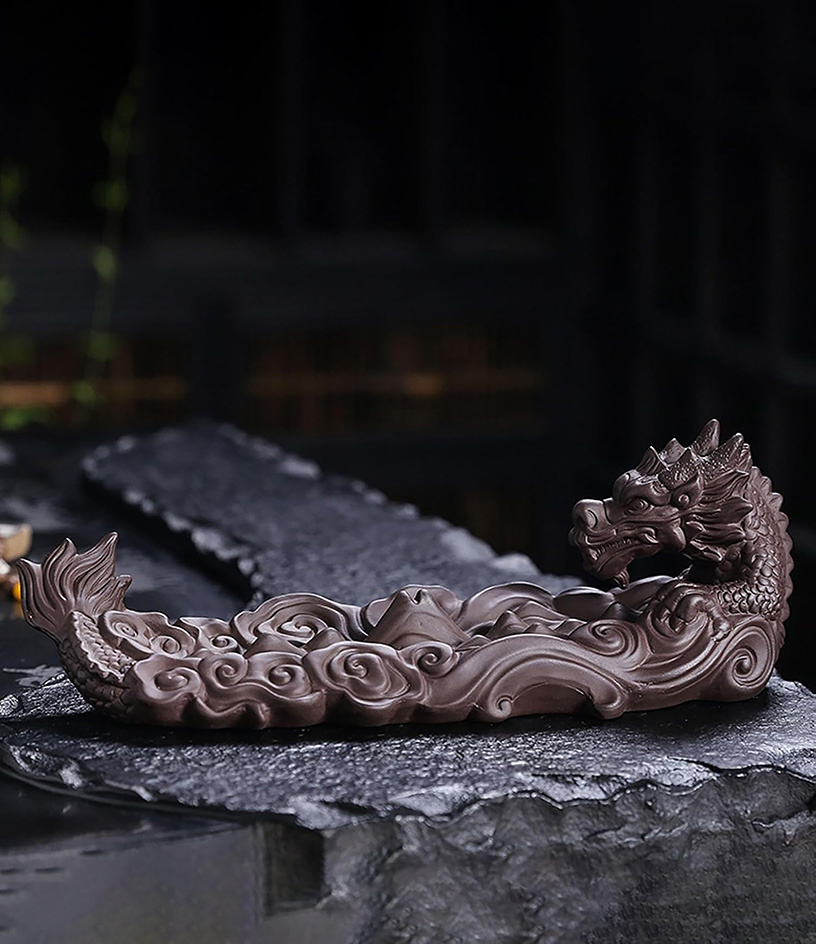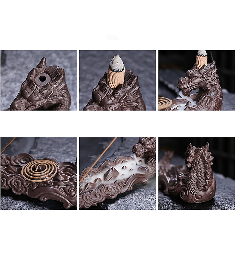 Ceramiczny kominek do kadzidełek backflow w kształcie smoka to elegancki dodatek do wnętrza, który łączy estetykę z funkcjonalnością. Obsługuje kadzidełka stożkowe (backflow) oraz klasyczne kadzidełka patyczkowe, dzięki czemu można dostosować go do różnych rytuałów aromaterapii i medytacji.