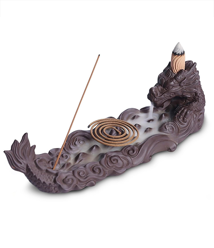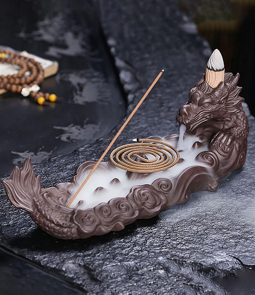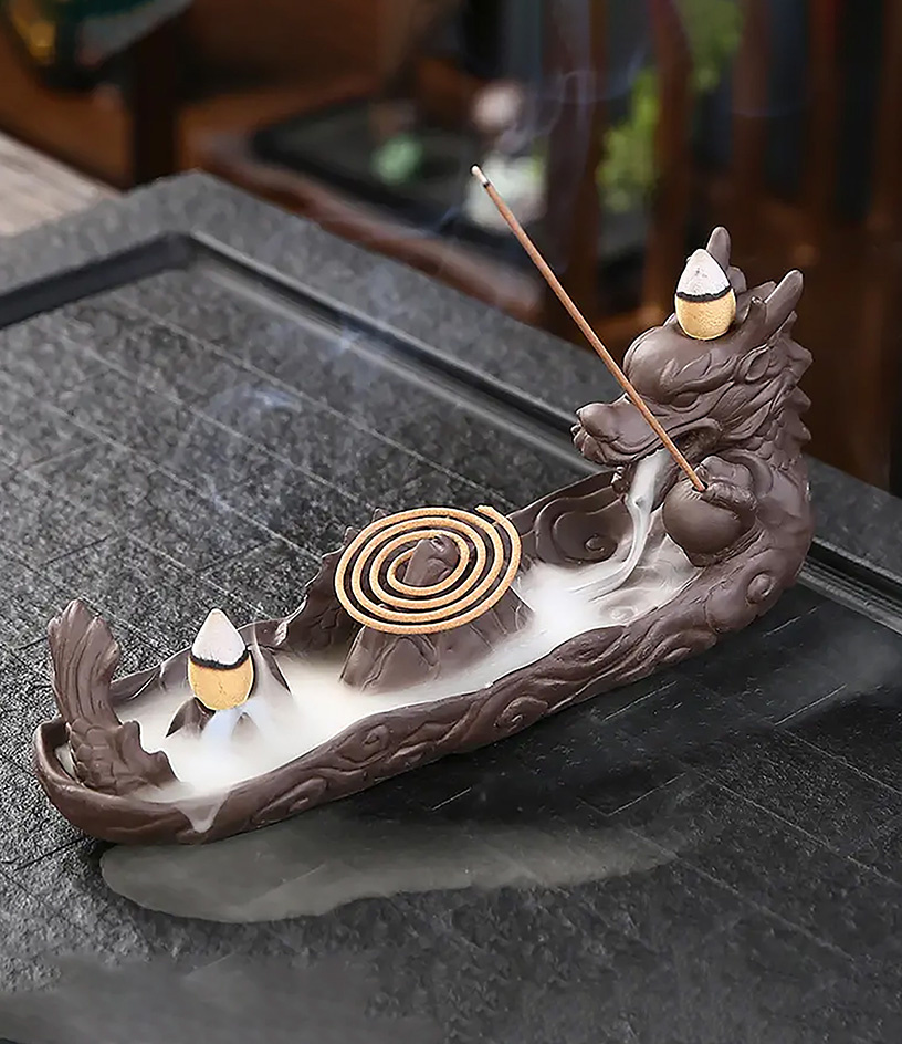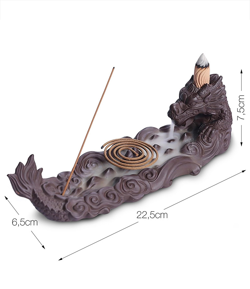 Kominek do kadzidełek backflow, smok, podstawka na stożki i patyczki