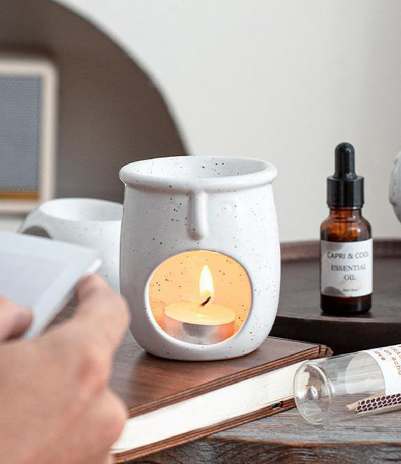 - Zagłębienie na górze do olejków eterycznych lub wosków zapachowych