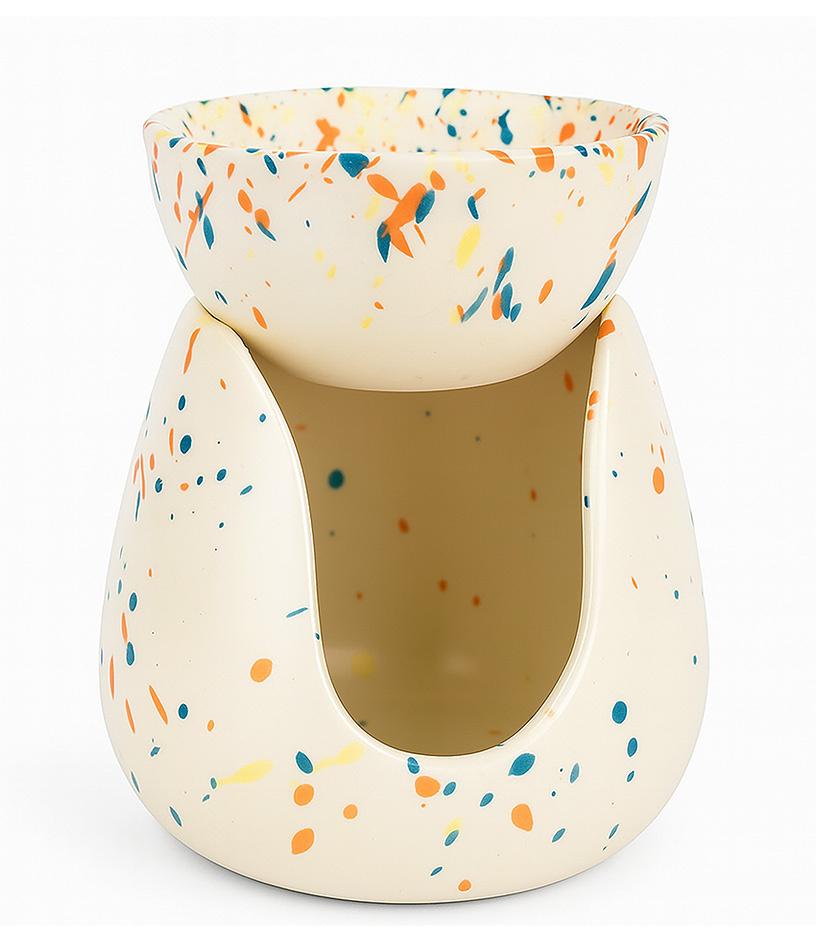 Biały Nakrapiany Podgrzewacz Ceramiczny – Kominek do Aromaterapii 11 cm