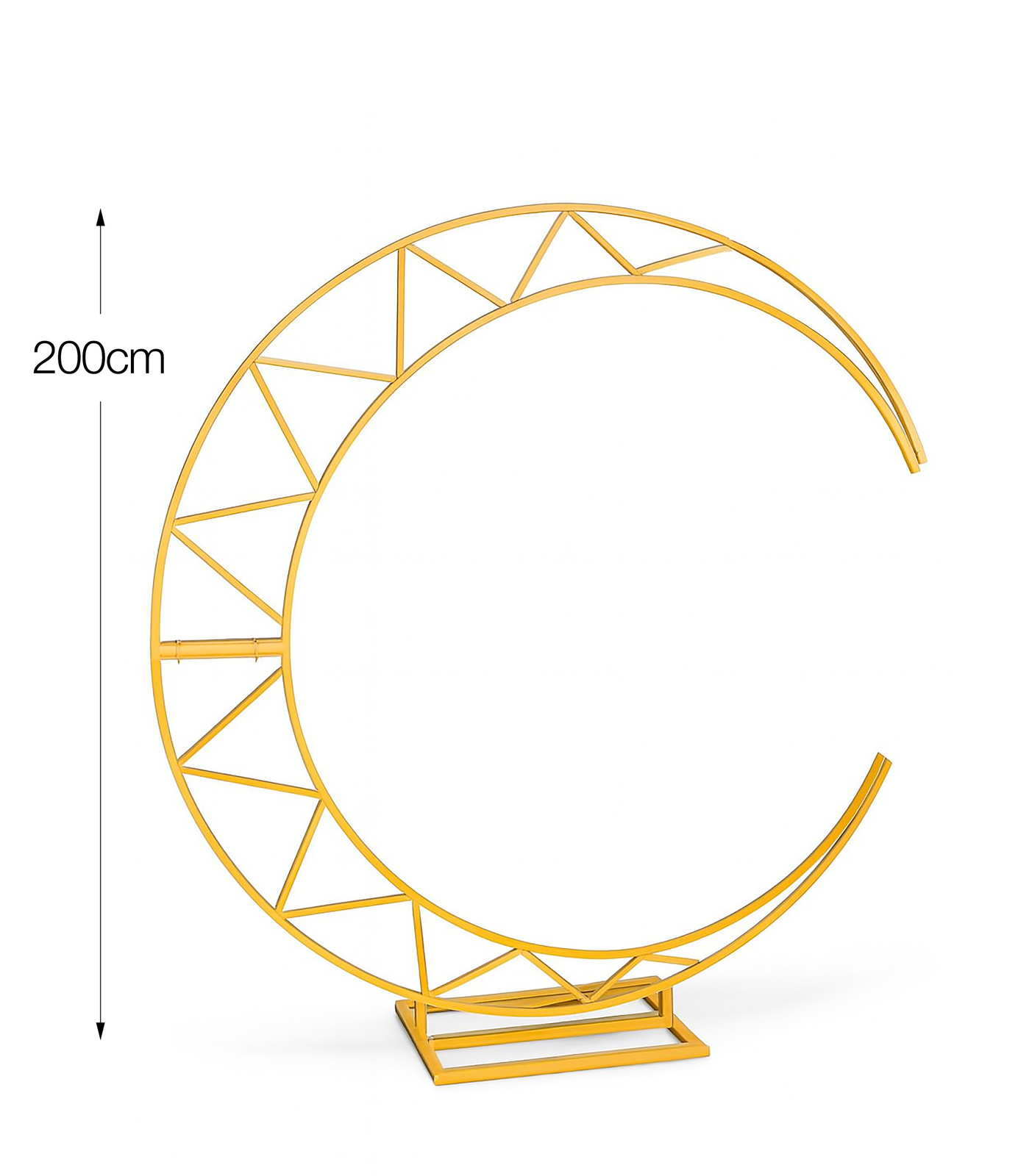 Wyobraź sobie magiczny moment, gdy stoisz w blasku świec, a za Tobą złoty półksiężyc otulony dekoracjami. To nie tylko tło – to symbol nowego początku, przestrzeń pełna emocji i piękna. Ten stojak tworzy atmosferę, która zostaje w pamięci na zawsze.Cechy produktu- Wysokość: 200 cm