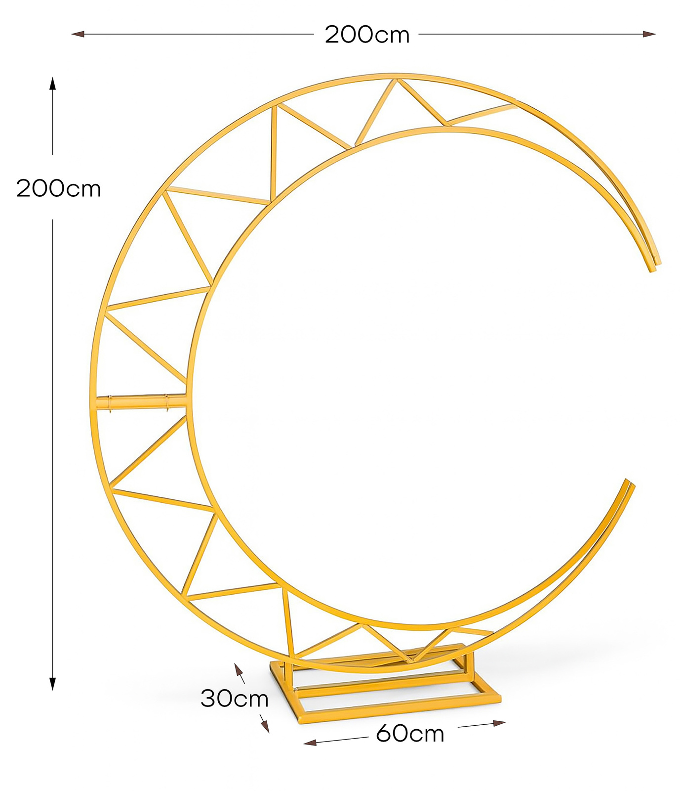 Wyobraź sobie magiczny moment, gdy stoisz w blasku świec, a za Tobą złoty półksiężyc otulony dekoracjami. To nie tylko tło – to symbol nowego początku, przestrzeń pełna emocji i piękna. Ten stojak tworzy atmosferę, która zostaje w pamięci na zawsze.Cechy produktu- Wysokość: 200 cm