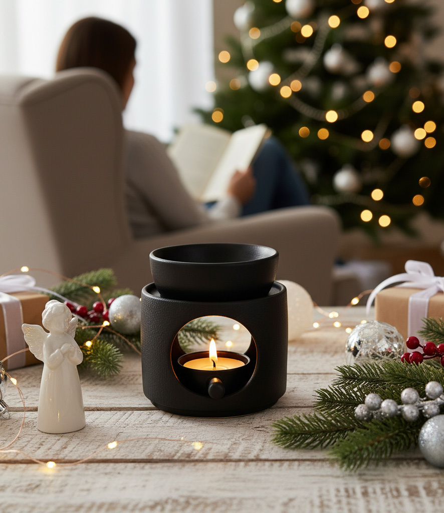 Ceramiczny kominek zapachowy czarny do aromaterapii
