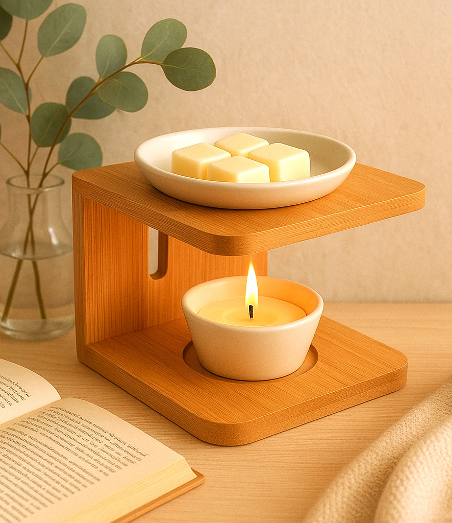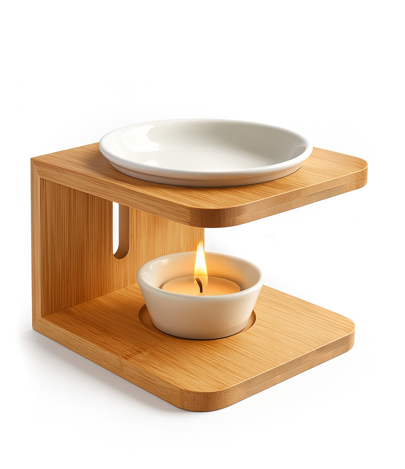 Kominek bambusowy z ceramiką do aromaterapii – na olejki i woski zapachowe