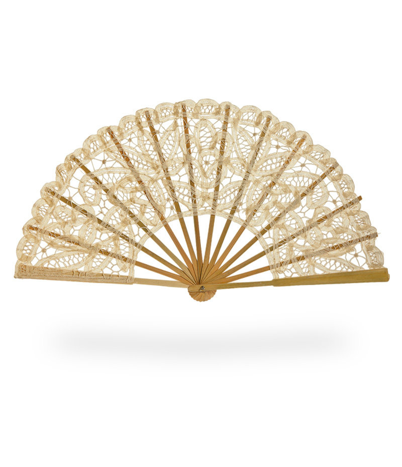 Ręcznie wykonany piękny wachlarz z bawełnianej koronki zwany wiktoriańskim lub hiszpańskim.