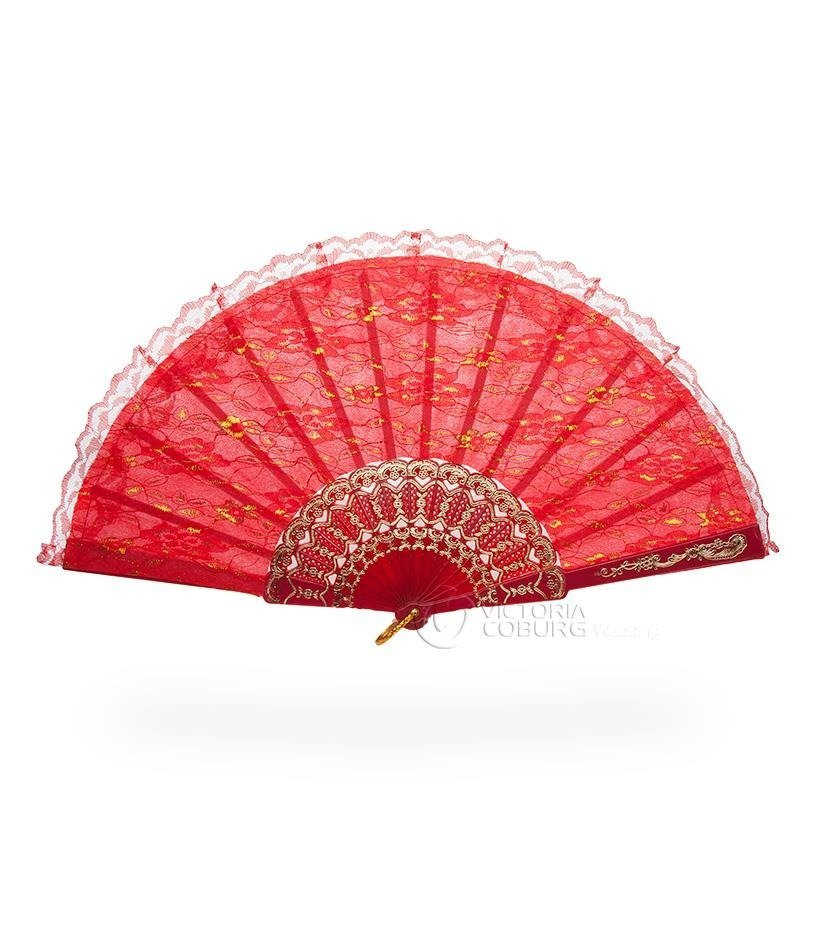 Ręcznie wykonany wachlarz zwany wiktoriańskim, hiszpańskim lub flamenco o kwiatoweym wzorze.