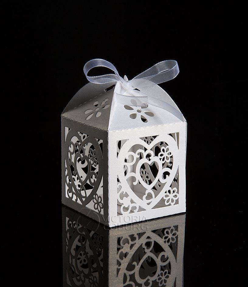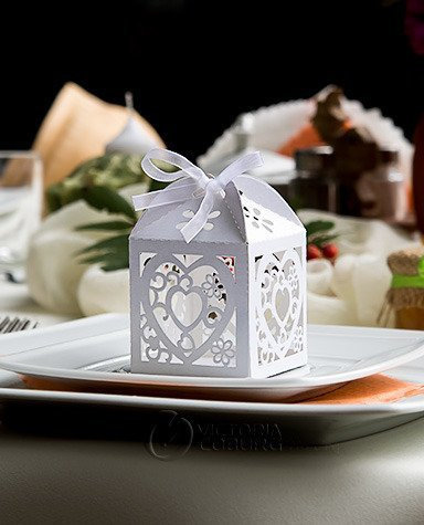 Pudełeczka do samodzielnego złożenia, idealne jako dekoracja stołu, z możliwością włożenia do środka np. migdałów w lukrze, cukiereczków, smakołyków lub po prostu drobnych upominków dla gości.