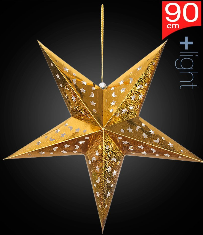 Lampion Gwiazda 90 cm – Świąteczna Złota Ozdoba Holograficzna do Wnętrz i Ogrodu